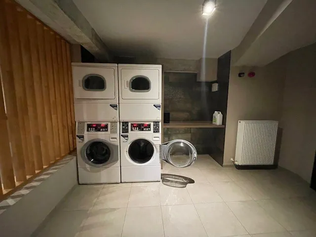 Grote troeven in het gebouw zijn de fietsruimte en een wasruimte met wasmachines, droogkasten en strijkplank.