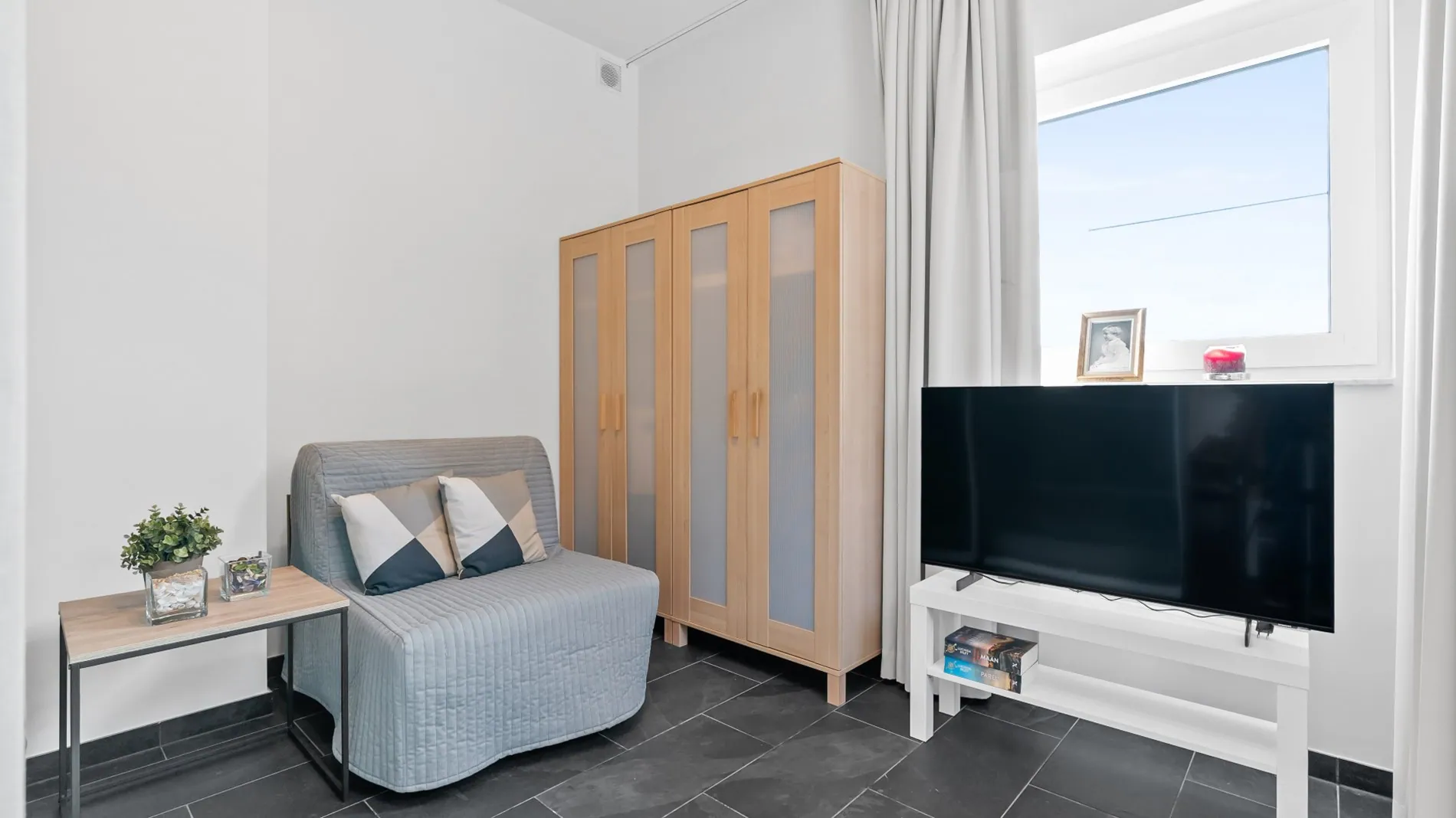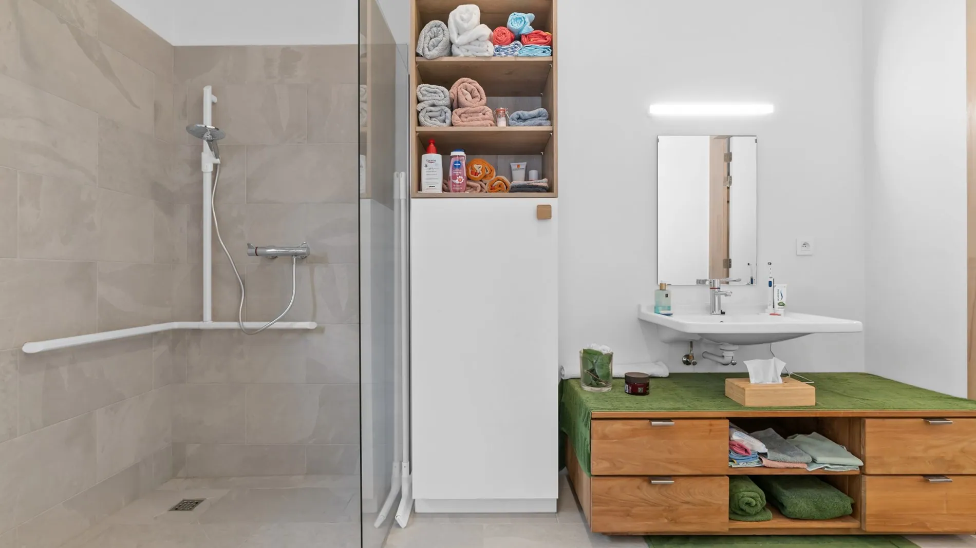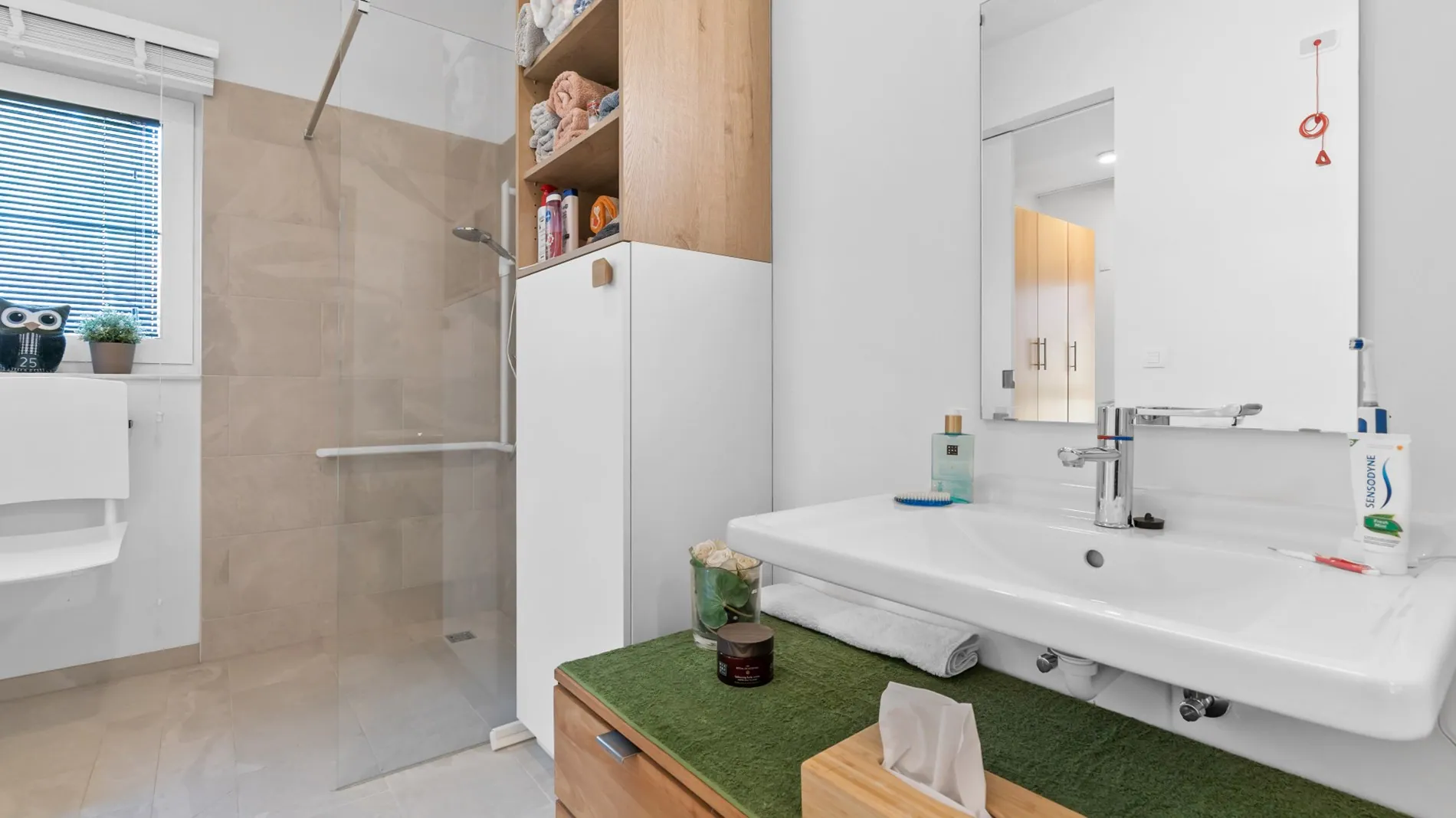 Deze assistentiewoning wordt voor deze prijs volledig instapklaar én geschilderd opgeleverd. U geniet zowel interieur als exterieur van een afwerking op het hoogste niveau, in een groene omgeving met toparchitectuur. Iedere eigenaar koopt ook bijkomend een eigen autostaanplaats én een garageberging van ±4 m2.