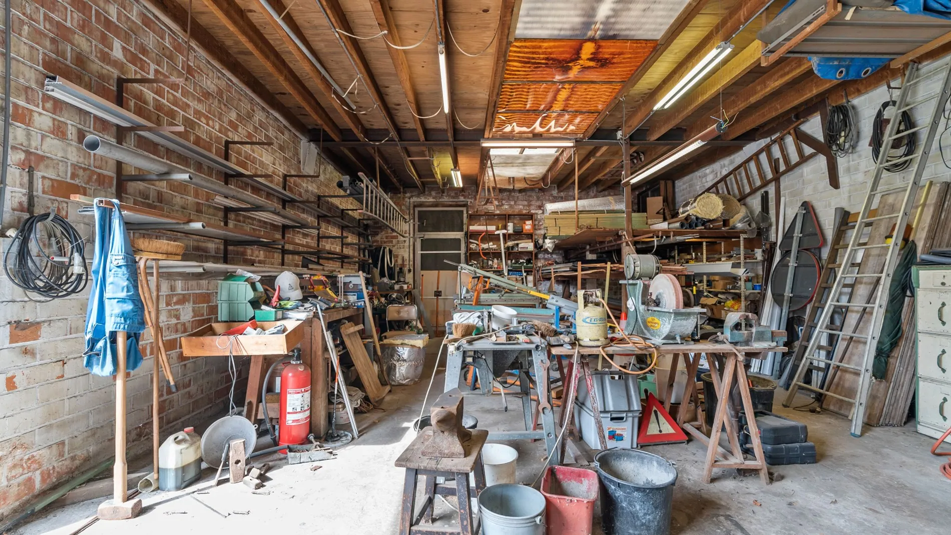 Achteraan het perceel bevindt zich een grote loods, jarenlang gebruikt als atelier/stockage door een dakwerker. Daarachter is er nog een gezellige, westgerichte tuin.