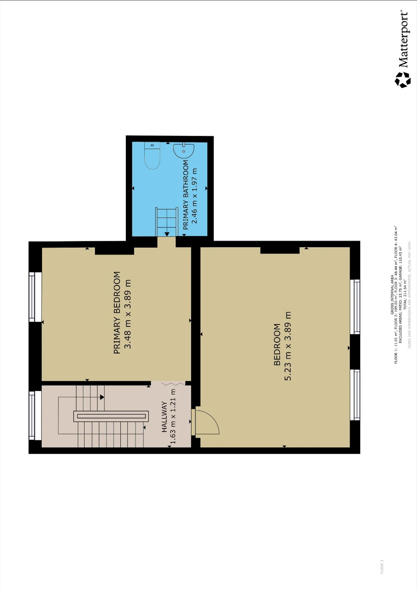 1e verdieping: 2 slaapkamers en een sanitaire ruimte.